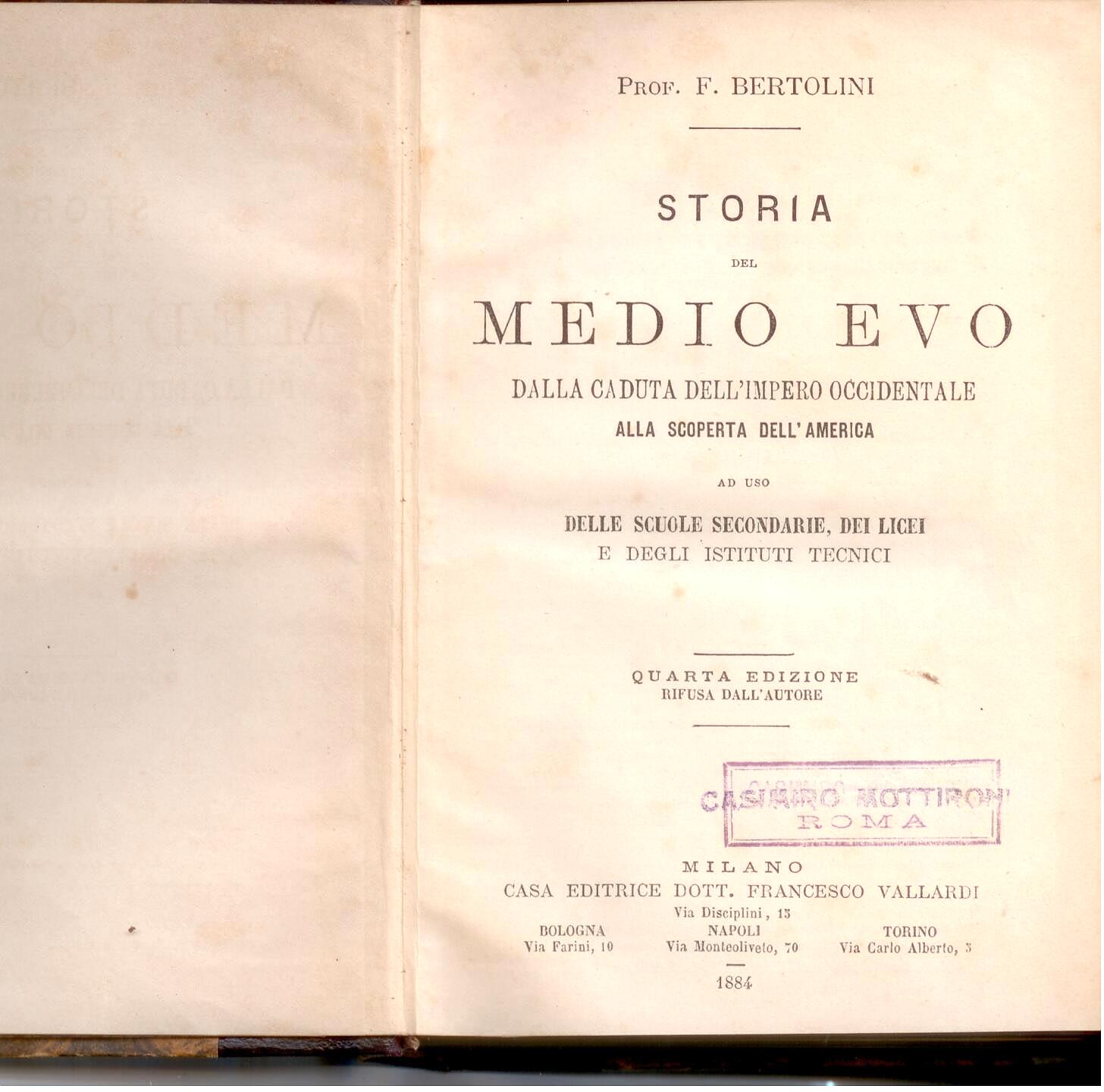As uso delle scuole Secondarie, dei Licei e degli Istituti Tecnici. Quarta edizione. leggere gore del tempo Ex libris e timbro in anteporta. |