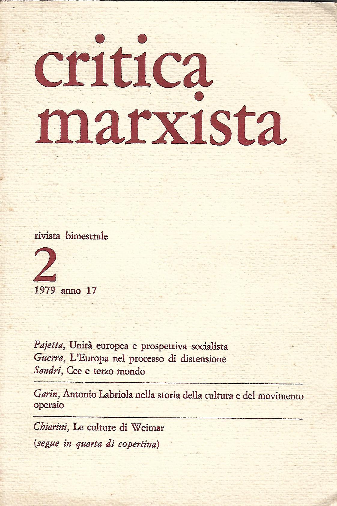 dal sommario - Unità europea e prospettiva socialista (Pajetta) - L'Europa nel processo di distensione (Guerra) - Cee e terzo mondo (Sandri) - Antonio Labriola nella storia della cultura e del movimento operaio (Garin) - Le culture di weimar (Chiarini) - Il mito della tecnica nei prodromi del nazismo (Masini) - Il contributo antigmatico della Scuola di Francoforte (Negt) - Masse femminili, partito comunista e costruzione di una nuova egemonia (Masssari) - Note su Raniero Panzieri (Ghelardi) - Unità della storia e pluralismo storiografico in Cantimori (Mari) |
