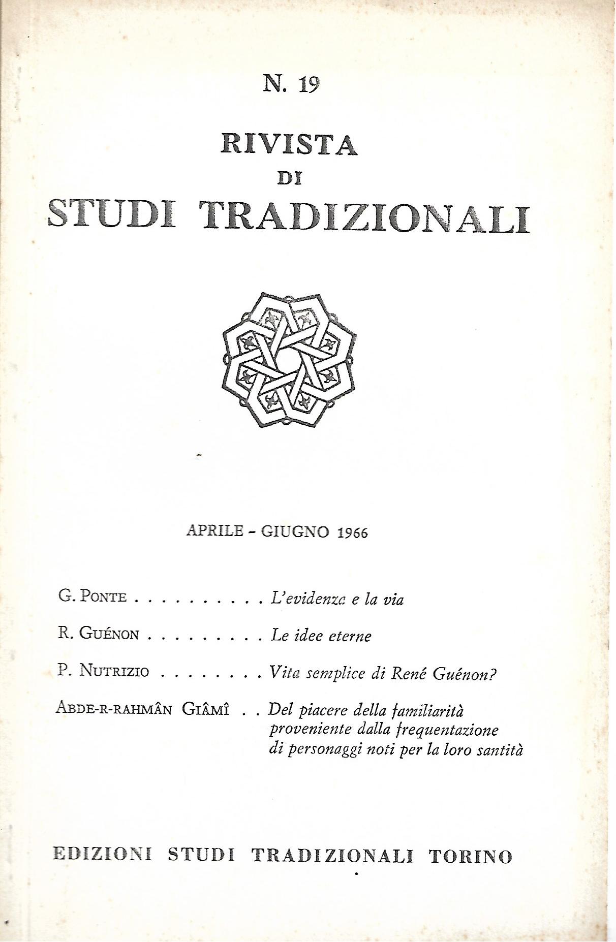 - Ponte G., L'evidenza e la via - Guénon R., Le idee eterne - Nutrizio P., Vita semplice di René Guénon - Abde-R-Rahman Giami, Del piacere della familiarità proveninete dalla frequentazione di personaggi noti per loa loro santità - PRIMA parte |