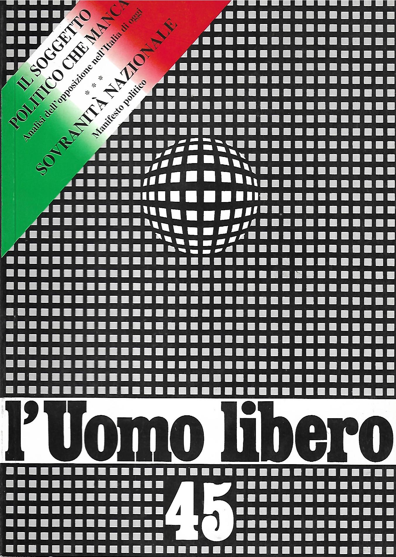 Manifesto politico del comitato promotore per la confederazione SOVRANITA' NAZIONALE Il sogetto politico che manca (Mario Consoli) Forza Nuova: dal costume europeo la rinascita del continente (Sergio Gozzoli) Appunti per la storia del collaborazionismo con l'invasore americano (Piero Sella) Le fondamenta giuridiche della battaglia per la sovranità (Marco Ciancaglini) E Altri |