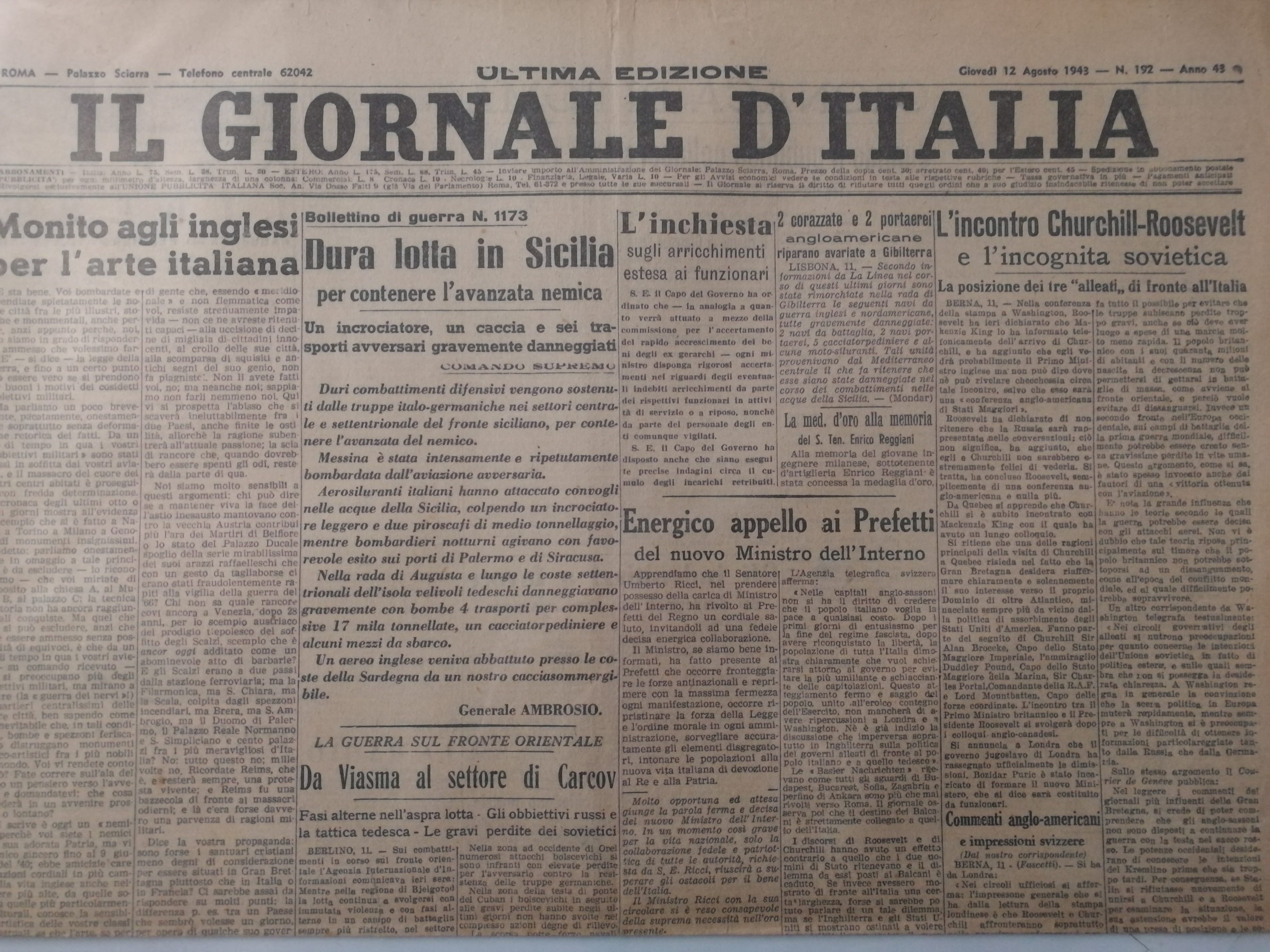 IL GIORNALE D'ITALIA 11 APRILE 1943
