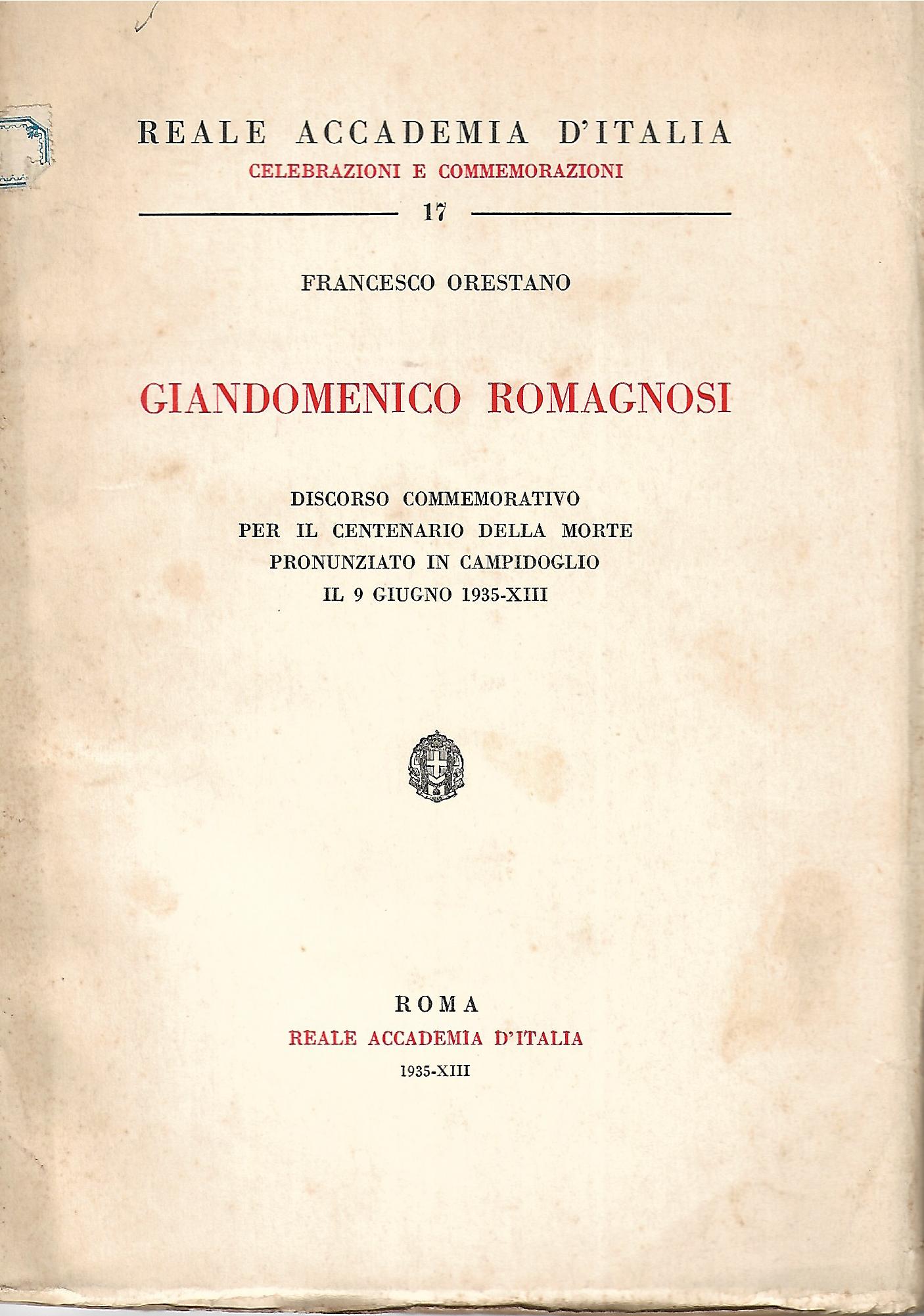 celebrazioni e commemorazioni - n. 17 Discorso commemorativo per il centenario della morte pronunciato in Campidoglio il 9 giugno 1935-XIII CON una foto a tutta pagina protetta da velina. |