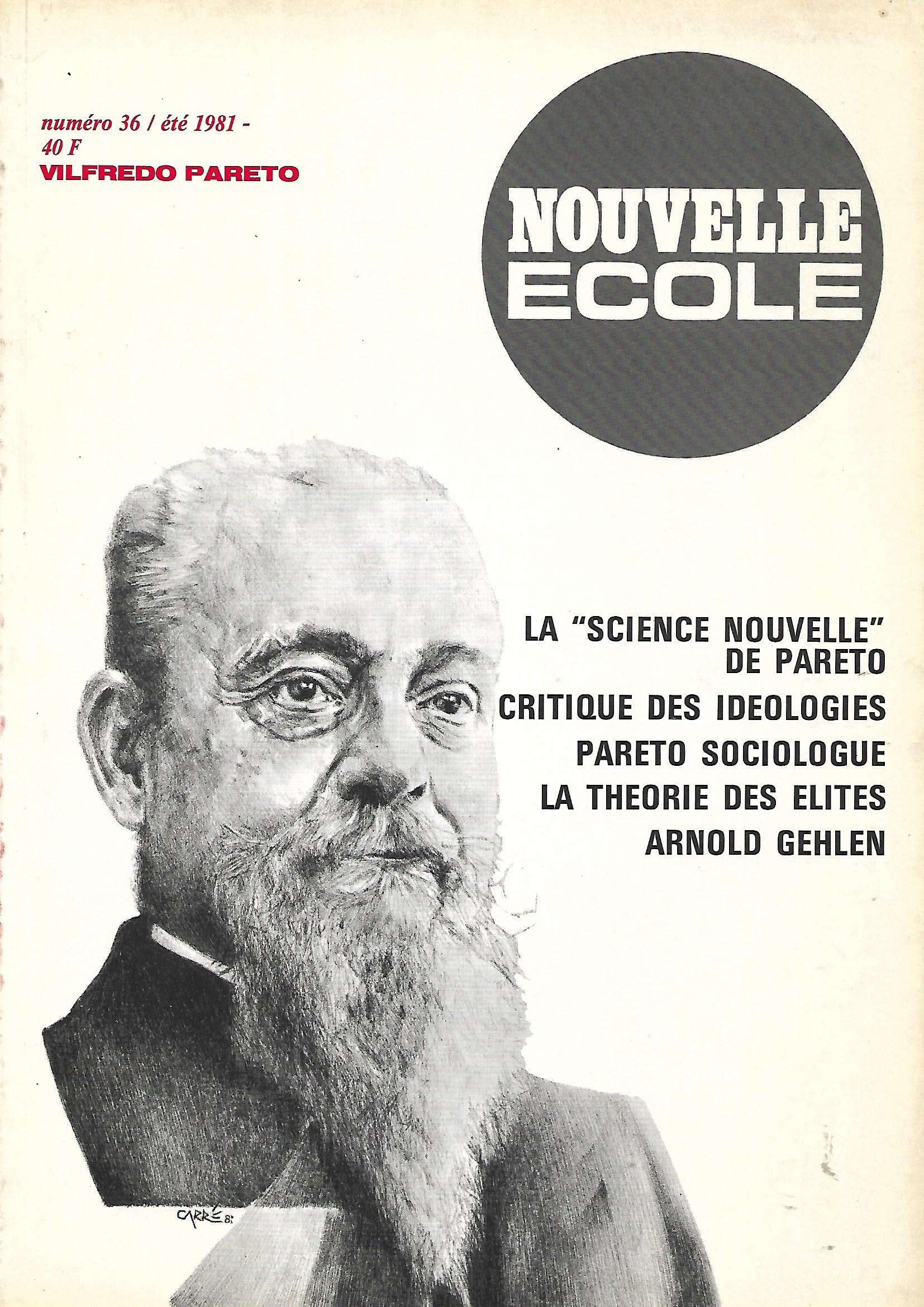 numero dedicato a Vilfredo Pareto segnaliamo - Vilfredo Pareto et sa "science nouvelle" (Arnold Gehlen) - L'apport de Pareto à la science économique (Piet Tommissen) - Pareto "doxanalyste" (Guillaume Faye) - Pareto, la critique des idéologies et de role des valeurs (Robert Steukers) |