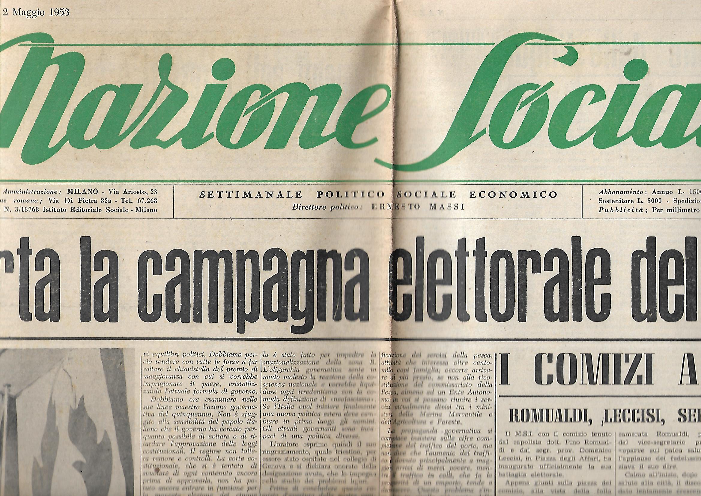 settimanale politico sociale economico diretto da Ernesto Massi