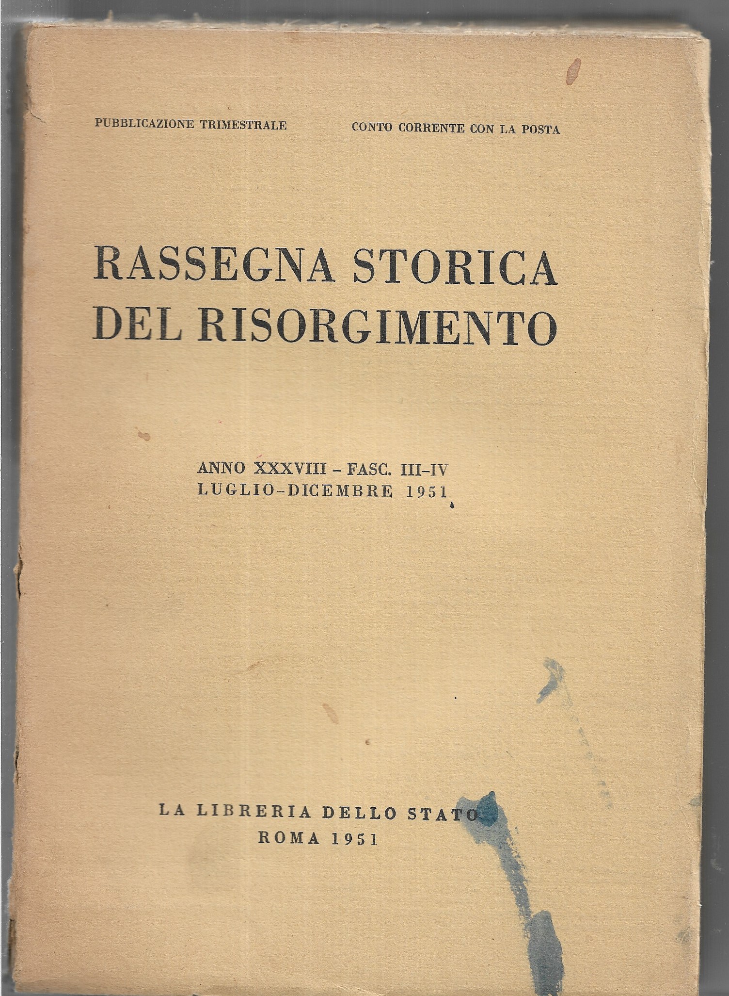 fascicolo doppio III-IV LUGLIO/DIcembre MACCHIA SULLA COPERTINA - dorso leggermente rovinato. |