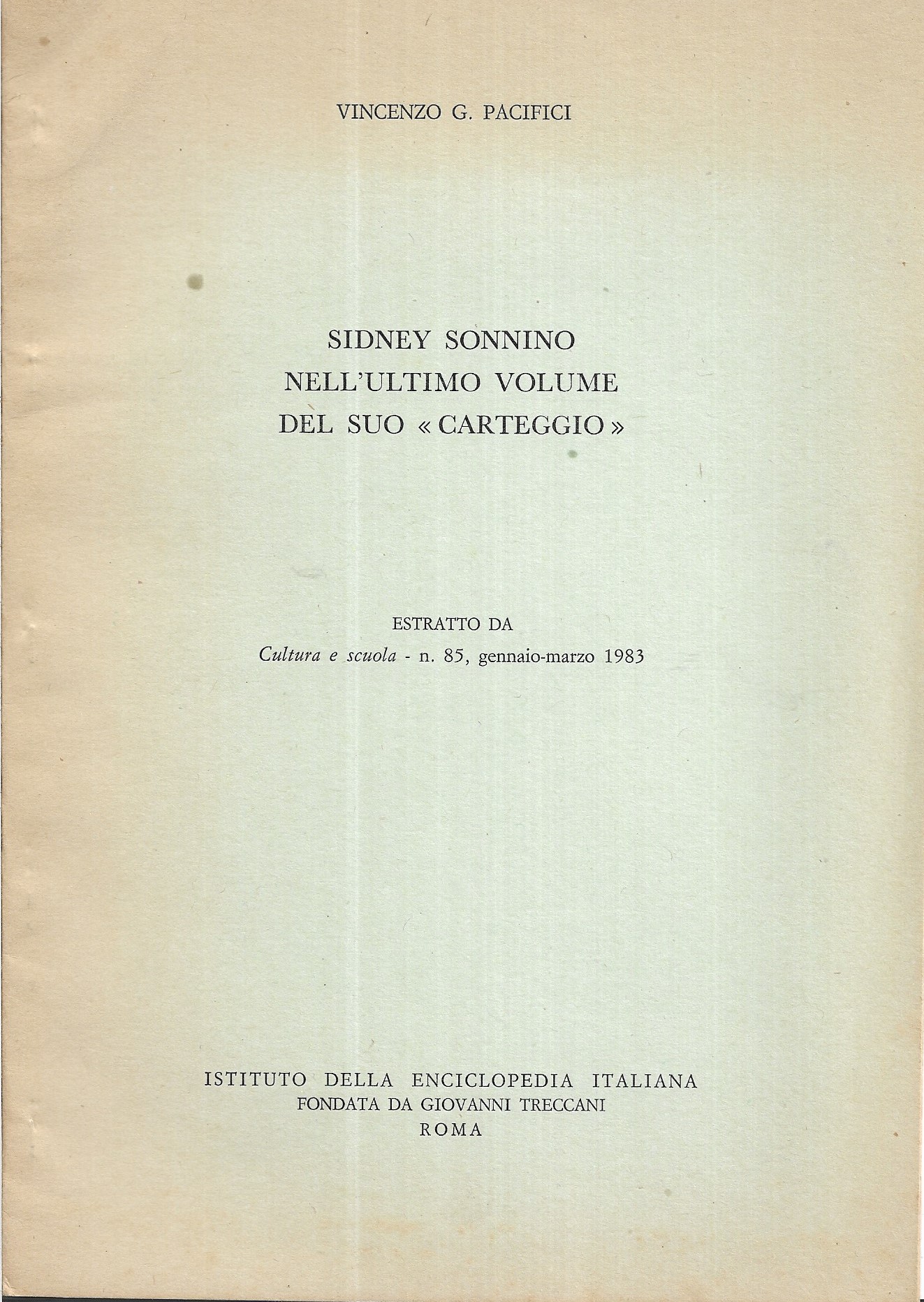 SIDNEY SONNINO NELL'ULTIMO VOLUME DEL SUO CARTEGG