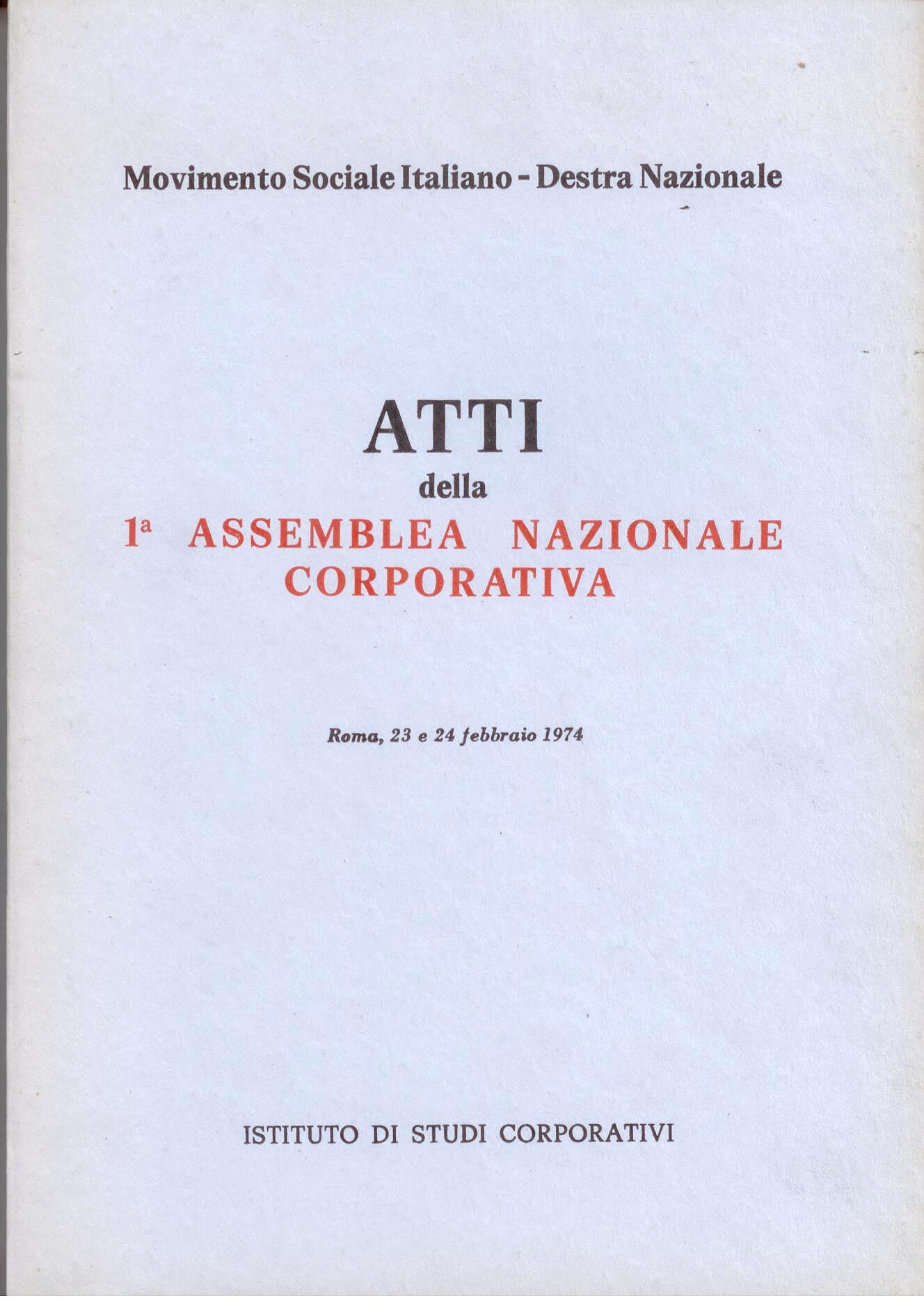 Interventi di Ernesto Massi, Gaetano Rasi, Giorgio Almirante, Pino Romualdi, Ernesto De Marzio, Gastone Nencioni, Gianni Roberti, Giorgio Bacchi, Marino Bon di Valsassina, Nino Gugliemi, Ignazio Scotto, Antonio Fede, Pietro Cerullo, Armando Plebe, Valerio De Sanctis, Furio Fasolo, Franco Franchi e altri.