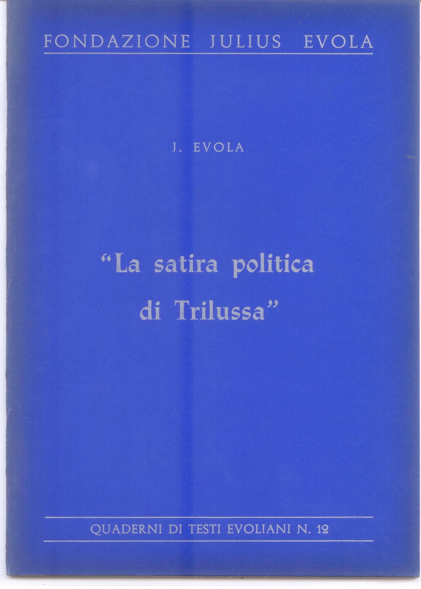 Brani inseriti nel quaderno: La satira di Trilussa รจ fascista? (Regime Fascista 5 e 6 luglio 1933), Una favola su Trilussa (Roma 23.1.72), Bibliografia di Trilussa. In appendice: le favole di Trilussa citate da Evola.