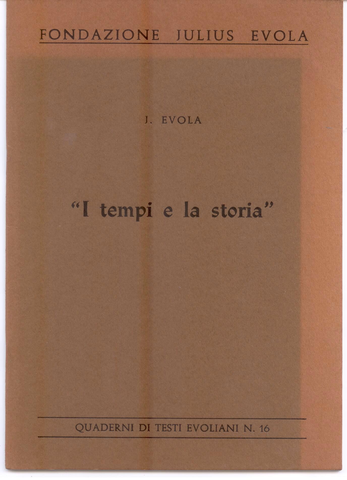 I testi contenuti: Il mondo è piombato in una età oscura (Roma 26.10.56), Viaggio di cento secoli fra le nebbie della preistoria (Roma 21.1.51), I tempi e la storia (Roma 14.1.54), Nuova Storia (Il Nazionale 28.7.57), Storia e antistoria (La Destra 1974), Civiltà dello spazio e civiltà del tempo (Regime Fascista 20.11.35)