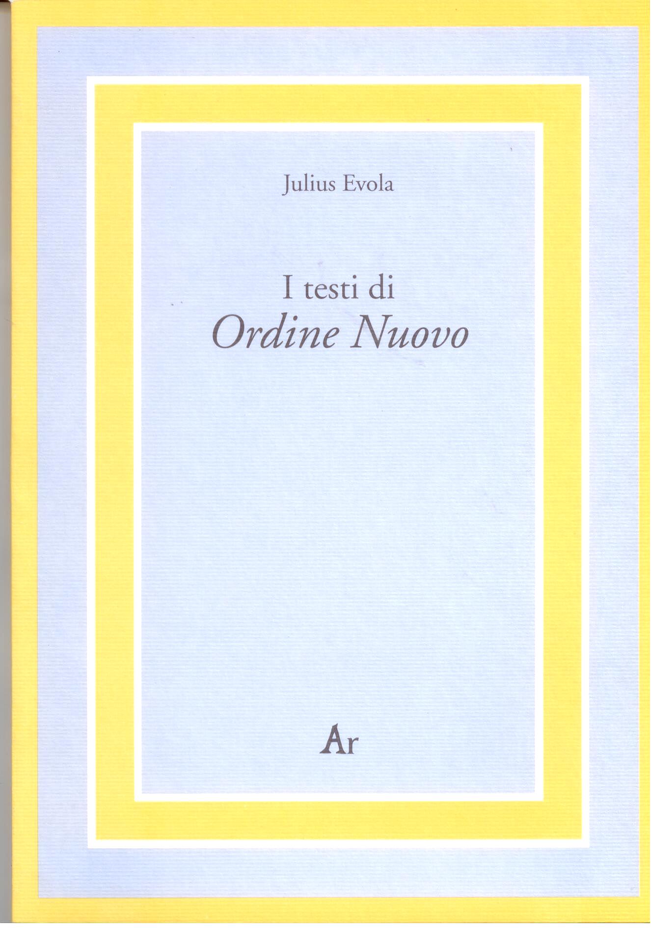 Saggio introduttivo di Renato del Ponte: La collaborazione di Evola alla rivista Ordine Nuovo. Notizia di Piero Di Vona. |