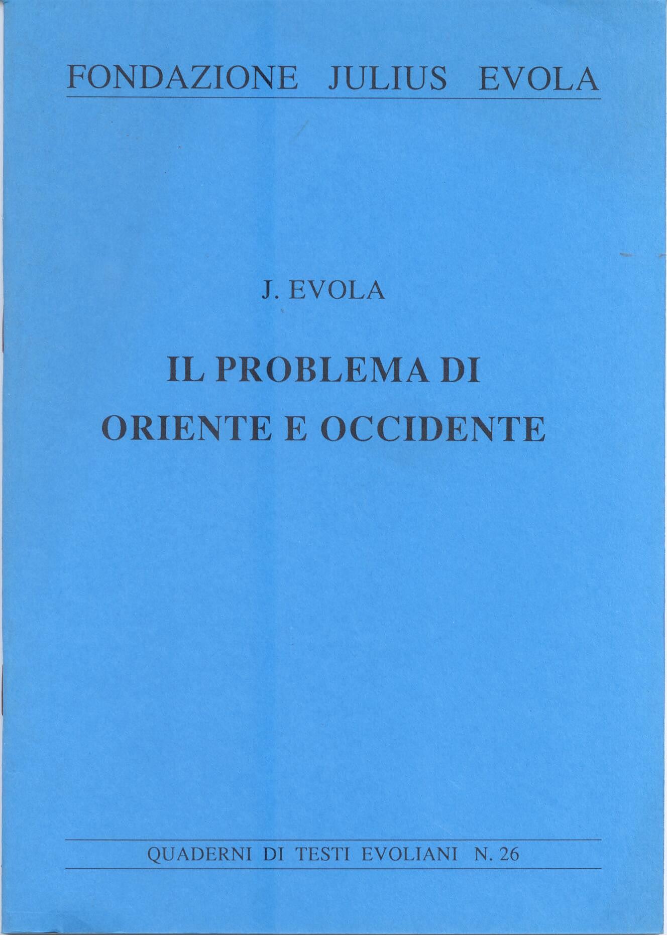 I brani scelti per questo quaderno illustrano la posizione di Evola riguardo al problema "Oriente e Occidente" in tre momenti di evoluzione del suo pensiero. |