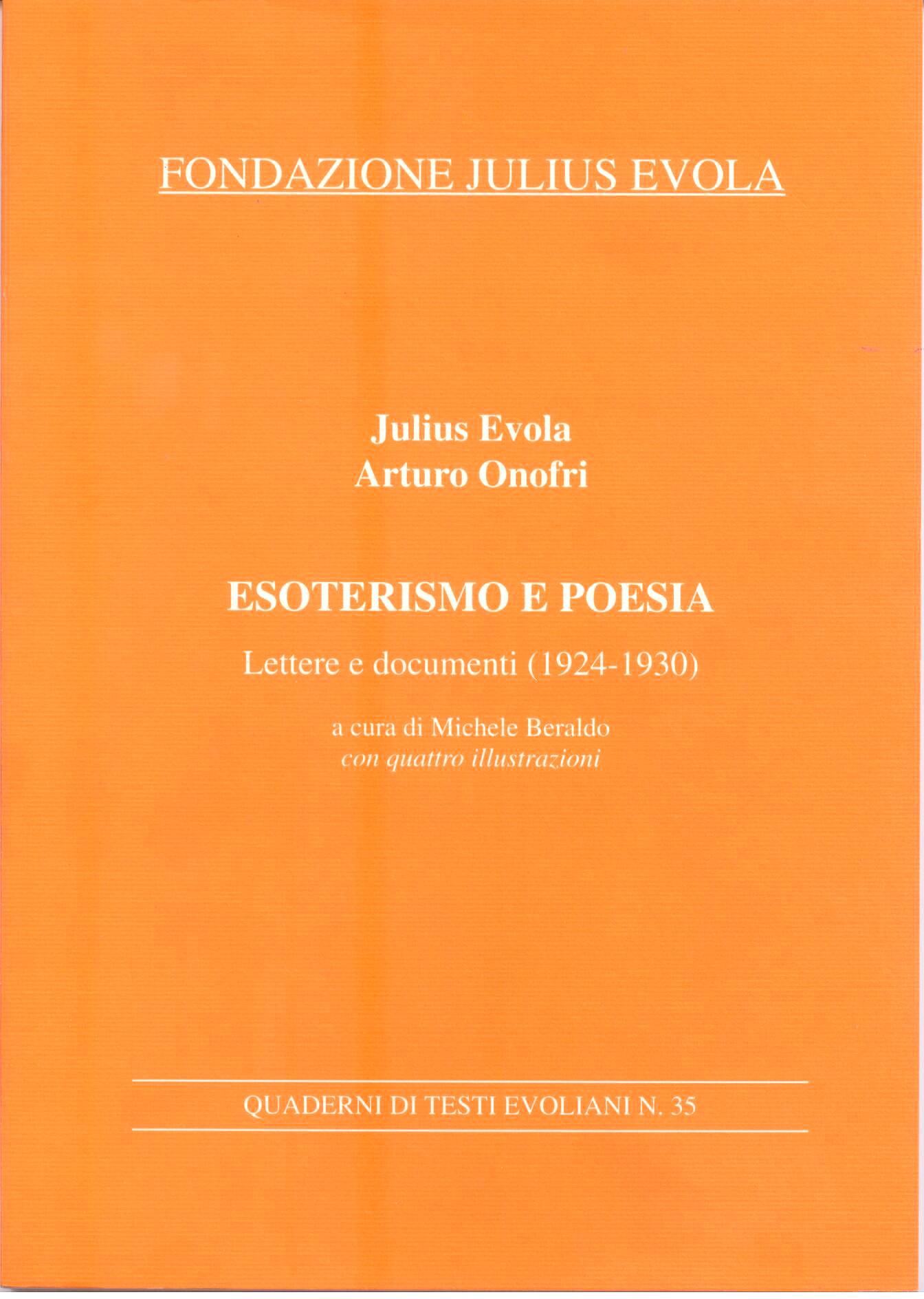 Quattro articoli di Evola sull'esoterismo nella poesia: Tombe d'argento, Terrestrità del Sole, Poesia e realizzazione, L'esperienza metafisica nella poesia di Arturo Onofri. Le lettere di Evola ad Onofri. Tre scritti di Arturo Onofri: Appunti sul Logos, Una volontà solare, Lirica. |