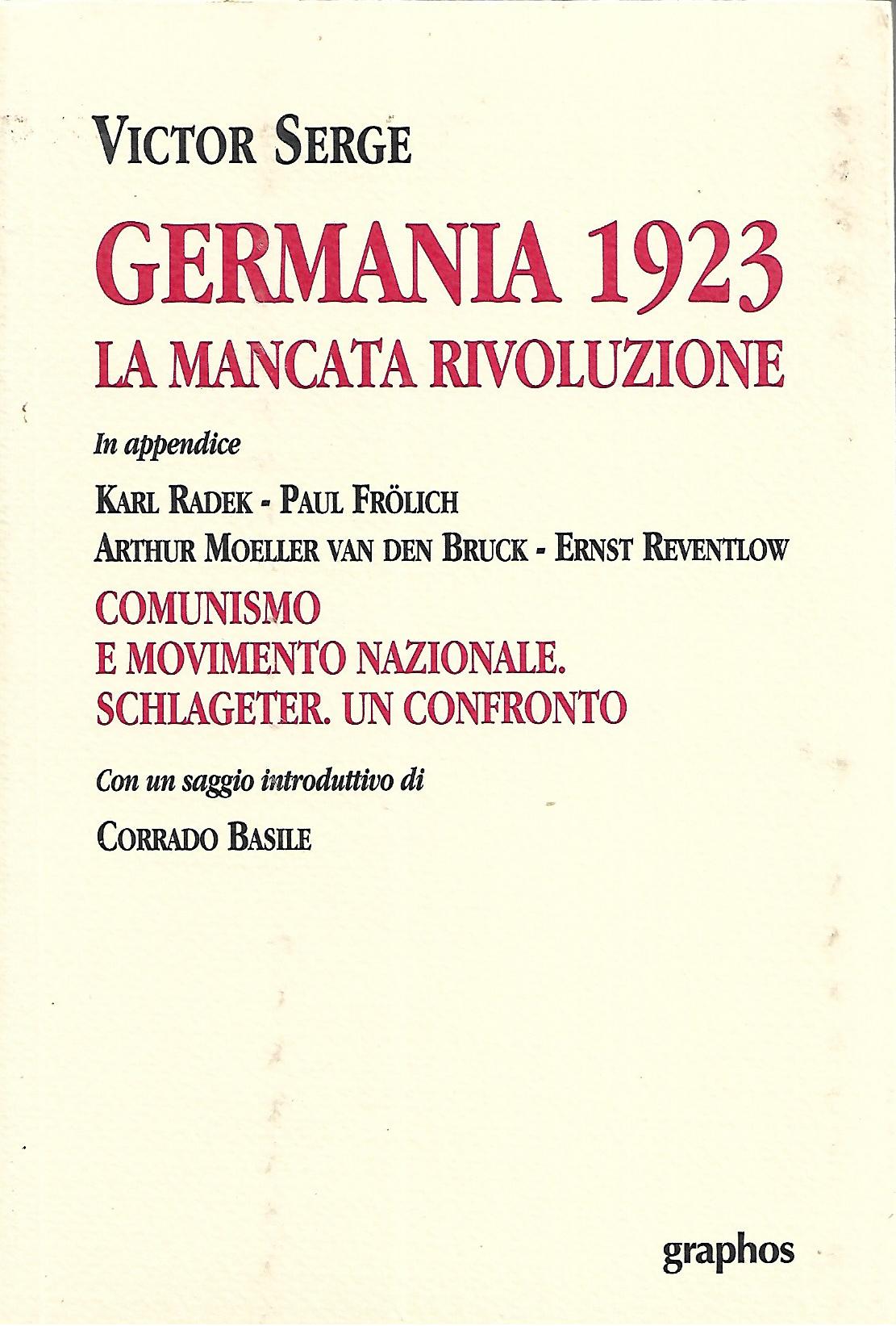 saggio introduttivo di Corrado Basile in appendice un opuscolo del settembre 1923 sui rapporti tra i comunisti e i nazionalisti: COMUNISMO E MOVIMENTO NAZIONALE - SCHLAGETER: UN CONFRONTO Con saggi di Arthur Moeller van den Bruck, Karl Radek, Paul Frolich e Ernst Reventlow. |