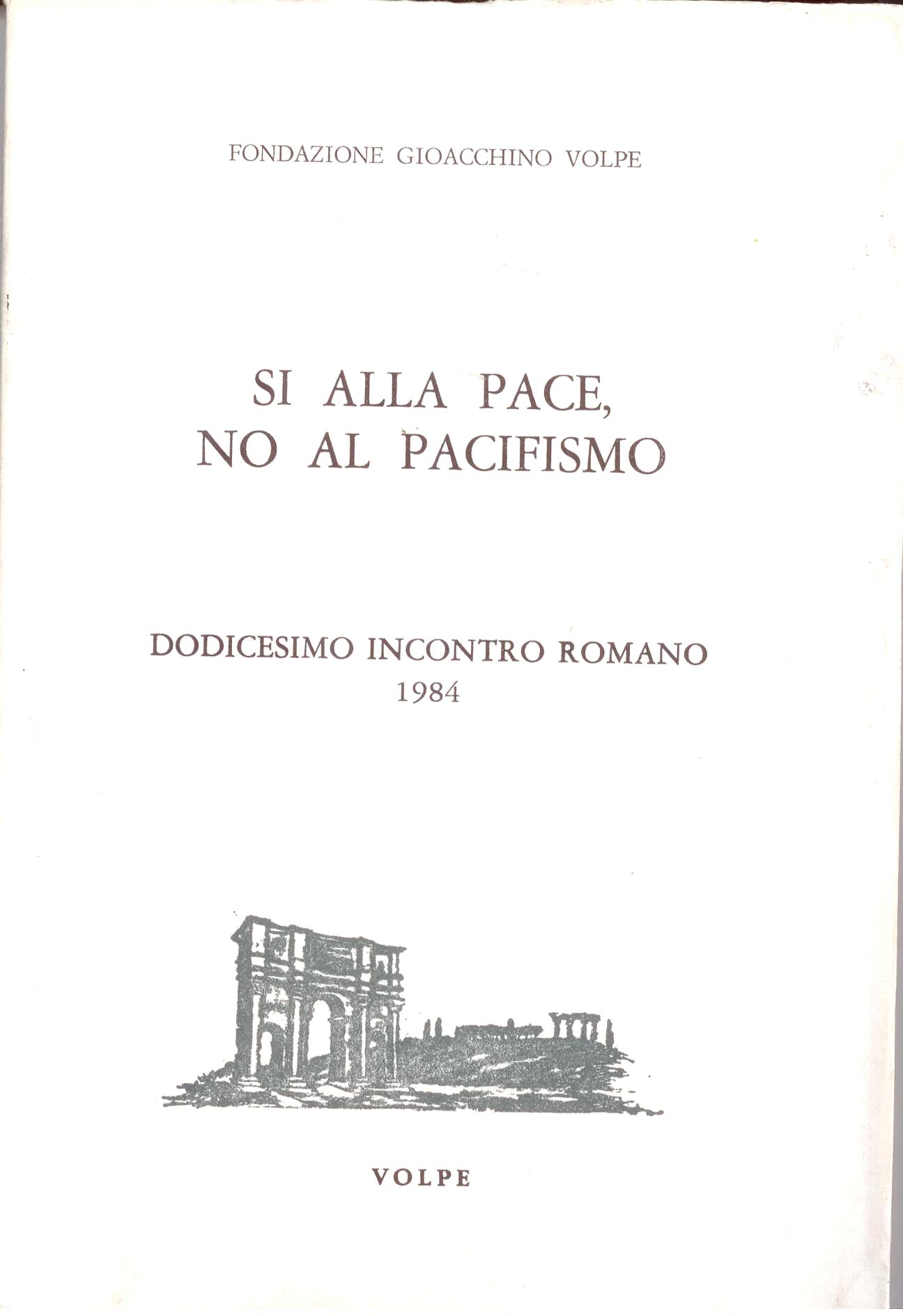 Prima seduta: Ricordo di Giovanni Gentile a quarant'anni dalla scomparsa (Ettore Paratore); Sì alla pace, no al pacifismo (Giovanni Volpe); Pacifismo e pace (Julien Freund). Seconda seduta: Il prezzo della pace (Mario Attilio Levi); L'ombrello europeo (Giuseppe Dall'Ongaro); Pace, pacifismo, pacificazione (Pier Francesco Nistri). Terza seduta: Pace e sicurezza (Pietro Corsini); Meglio rossi che morti: mai (Roberto de Mattei); Cultura e pace (Salvatore Valitutti) più vari interventi. Quarta seduta: Tavola rotonda coordinata da Francesco Grisi con Giano Accame, Roberto de Mattei, Fausto Gianfranceschi, Gennaro Malgieri, Francesco Mercadante, Claudio Quarantotto, Giuseppe Tricoli. Otto tesi sulla guerra e sulla pace (Marcello Veneziani); Giuseppe Prezzolini per una cultura della pace (Marina Campanile). Quinta seduta: Critica del pacifismo (Augusto Del NOce); Difendere l'Europa (Giovanni Volpe). |
