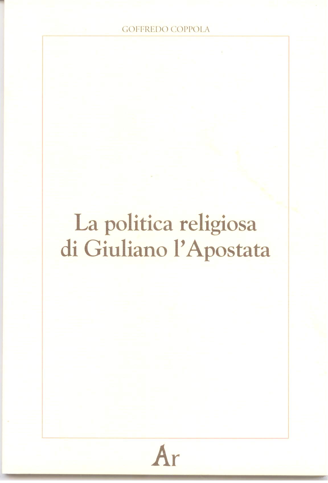 Un libro dalle molte qualità , questo studio di Goffredo Coppola sull'imperatore Giuliano. Una analisi acuminata dalla simpateticità , consapevole e sorvegliata, con l'imperatore. |