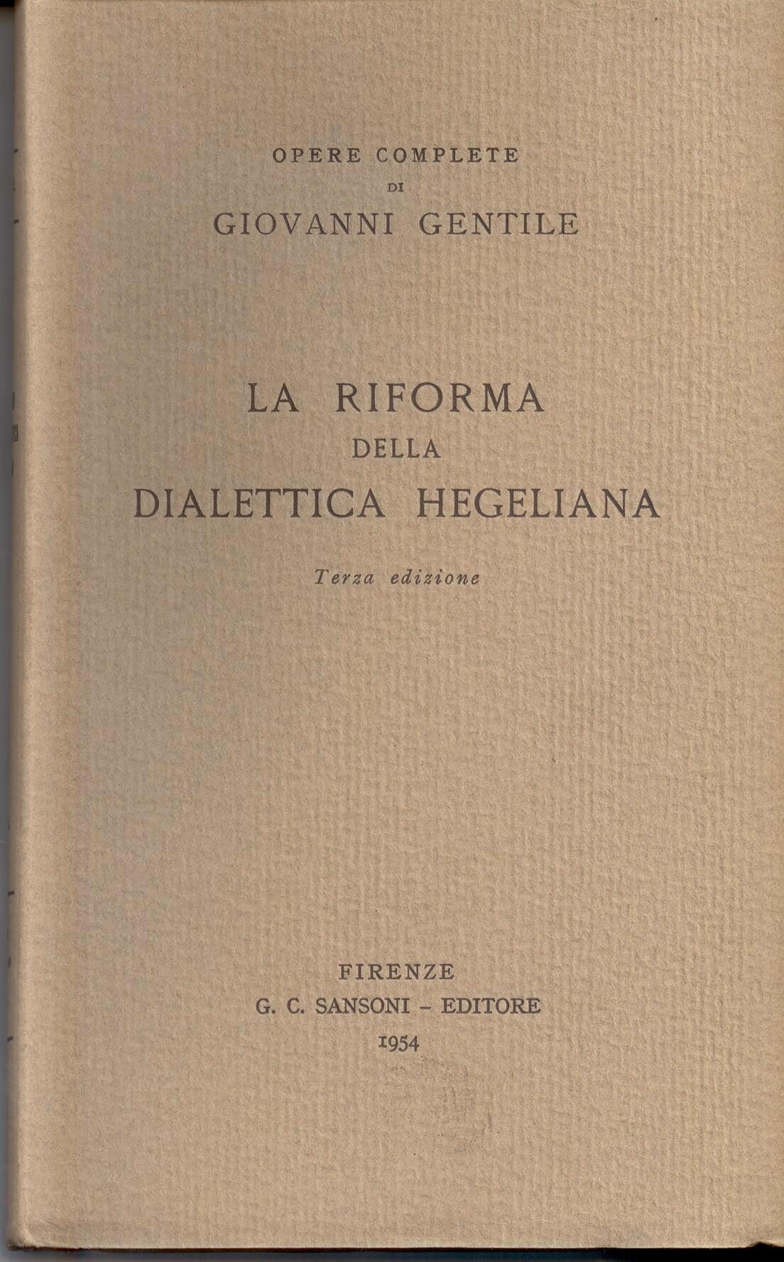 Opere Complete di Giovanni Gentile, vol. XVII. Nel 1913, Giovanni Gentile con la pubblicazione di La riforma della dialettica hegeliana, riprendendo l'interpretazione di Spaventa dell'Idea hegeliana, vedeva nella Logica hegeliana la categoria del divenire come coincidente con l'atto puro del pensiero in cui si trasfondeva tutta la realtà della natura, della storia e dello spirito. A questa visione soggettivistica di Gentile si contrappose fin dal 1913, Benedetto Croce che nel suo Saggio sullo Hegel interpretava il pensiero hegeliano come storicismo immanentistico: anche lui intendeva in modo diverso la dialettica hegeliana degli opposti integrandola con quella dei "distinti".