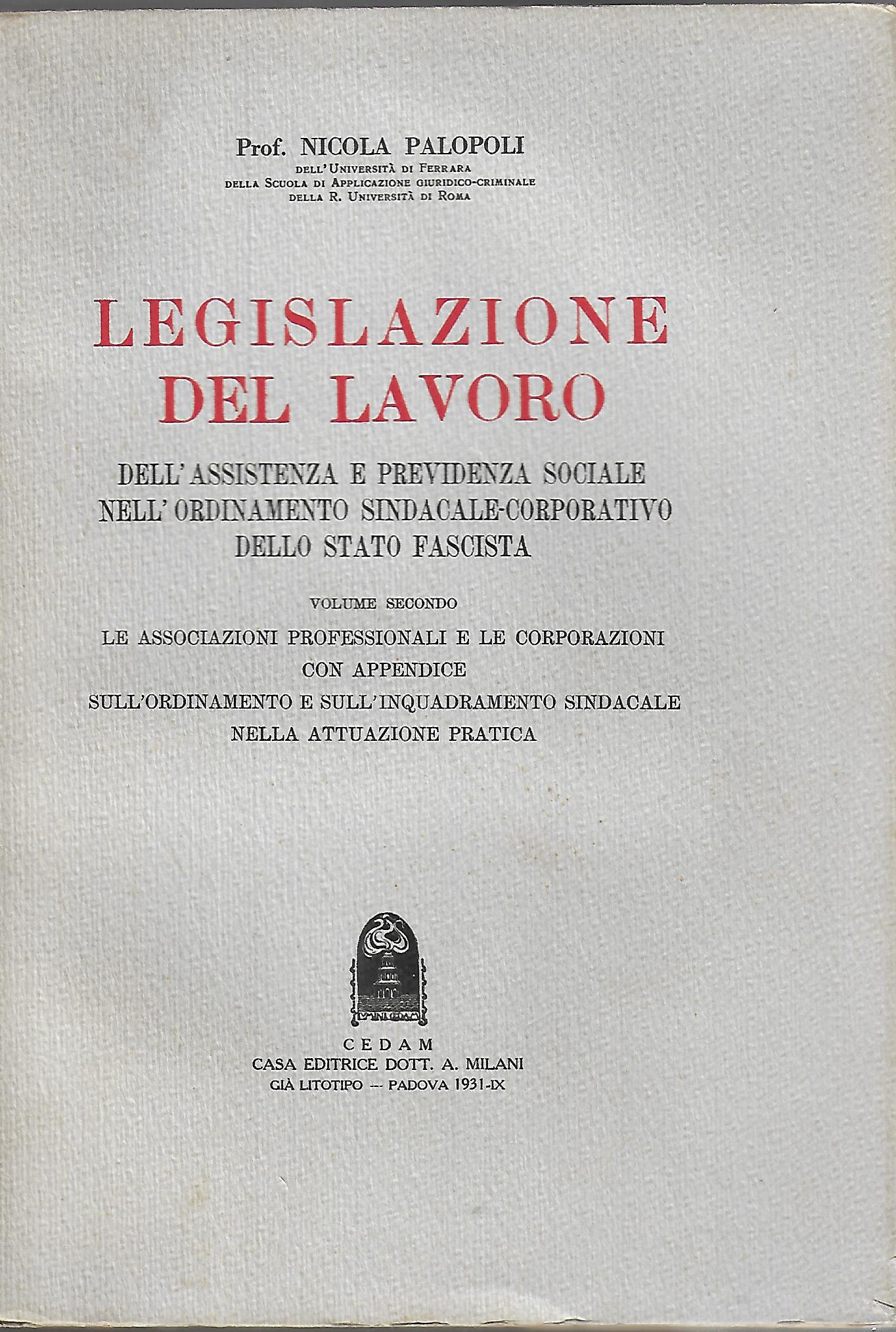 volume secondo: le associazioni professionali e le corporazioni con appendice sull'ordinamento e sull'inquadramento sindacale nella attuazione pratica |