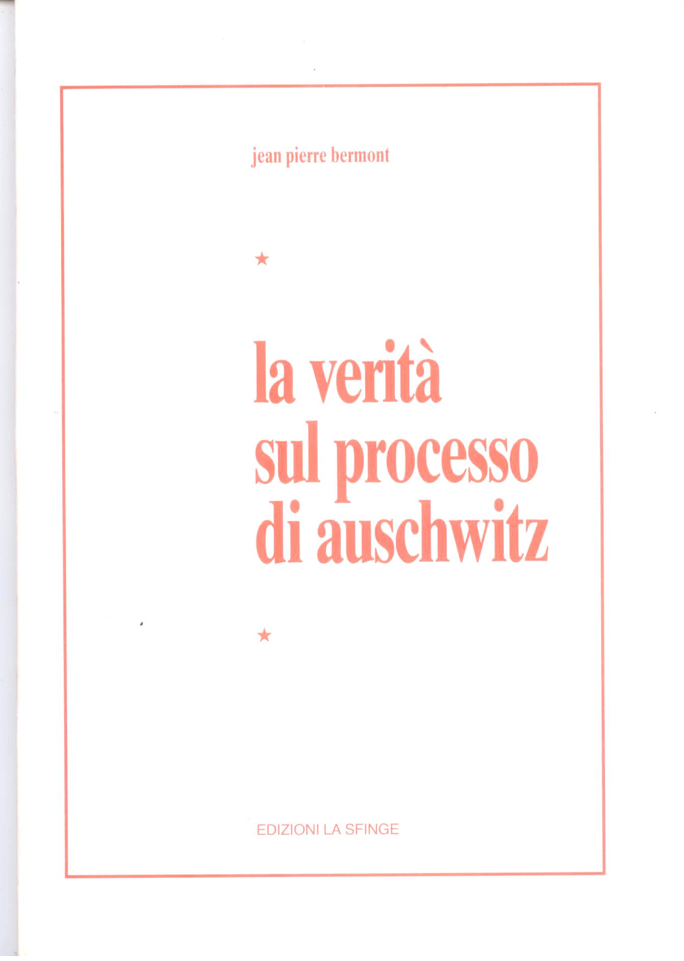 Il fascicolo ripropone gli articoli dedicati al processo di Auschwitz scritti in occasione del processo all'autore, corrispondente del settimanale francese Rivarol, a Francoforte, a gli inizi degli anni sessanta. Conclude una intervista a Rassinier.